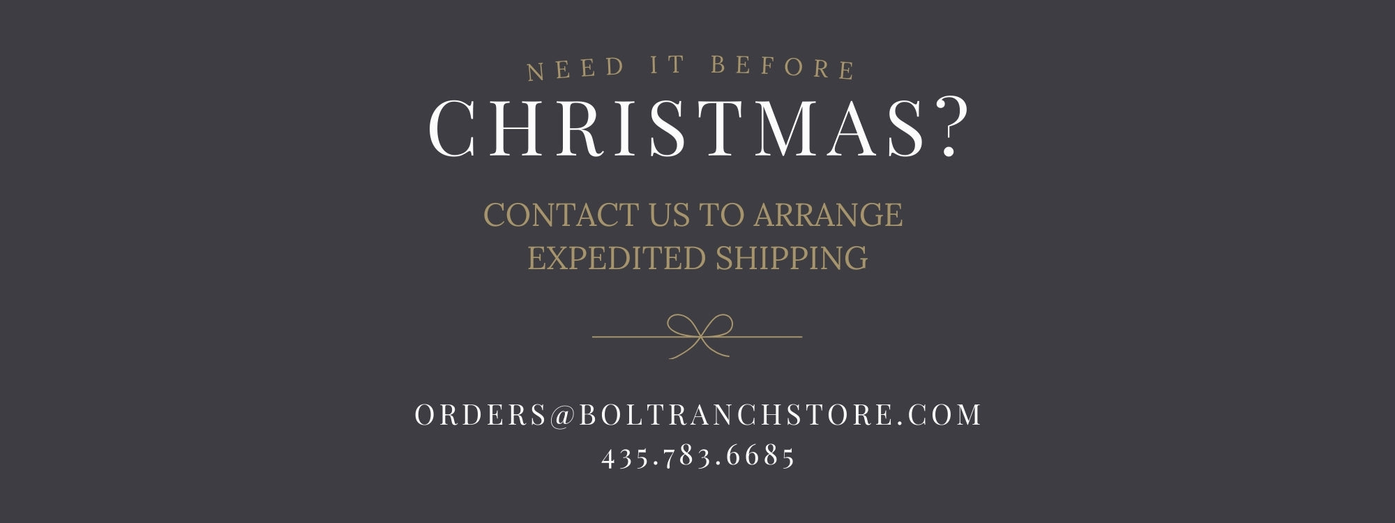 Located in the Kamas Valley of Northern Utah, Bolt Ranch Store has become the Intermountain West "must shop" destination for Western enthusiasts. Housed in a landmark 100 year old building, The Bolt Ranch Store features apparel for everyone from working men to cowgirl chic. In store you'll find clothing, fine jewelry and buckles, a large selection of boots, rare collectibles and original artwork, house decor and gifts all served up with genuine Western hospitality.