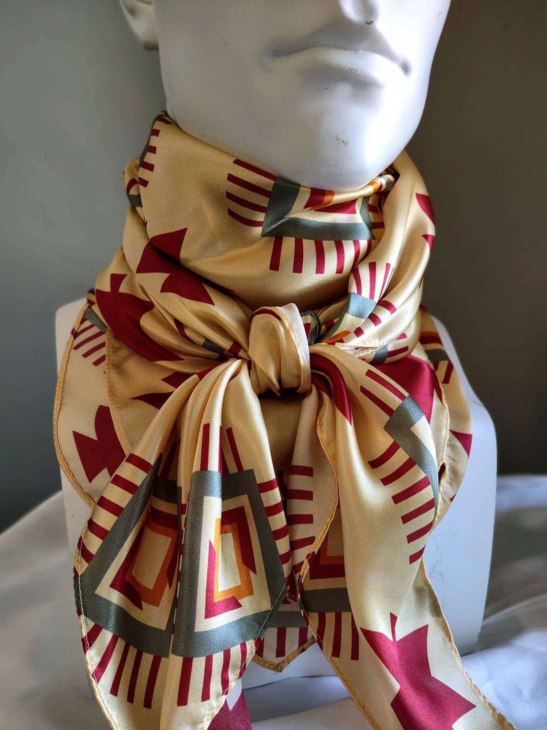 Wild Rag 100% Silk Aztec Ivory and Burg