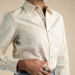 We aimed to make something both timeless and distinctly original with this indigo denim pearl snap. Traditional smile pocket western shirts are loud and in your face—a style we love. But with the Hondo we aimed for a shirt you can take anywhere. Versatile enough for a day at the rodeo or a night on the town. We crafted this one with the amiga in mind, with a graceful silhouette and all the western details that make this one a head turner: smile pockets, vintage pearl snaps, and a boot stitch accent. However you wear it, this looker has just enough flair to make you the talk of the waterin' hole.