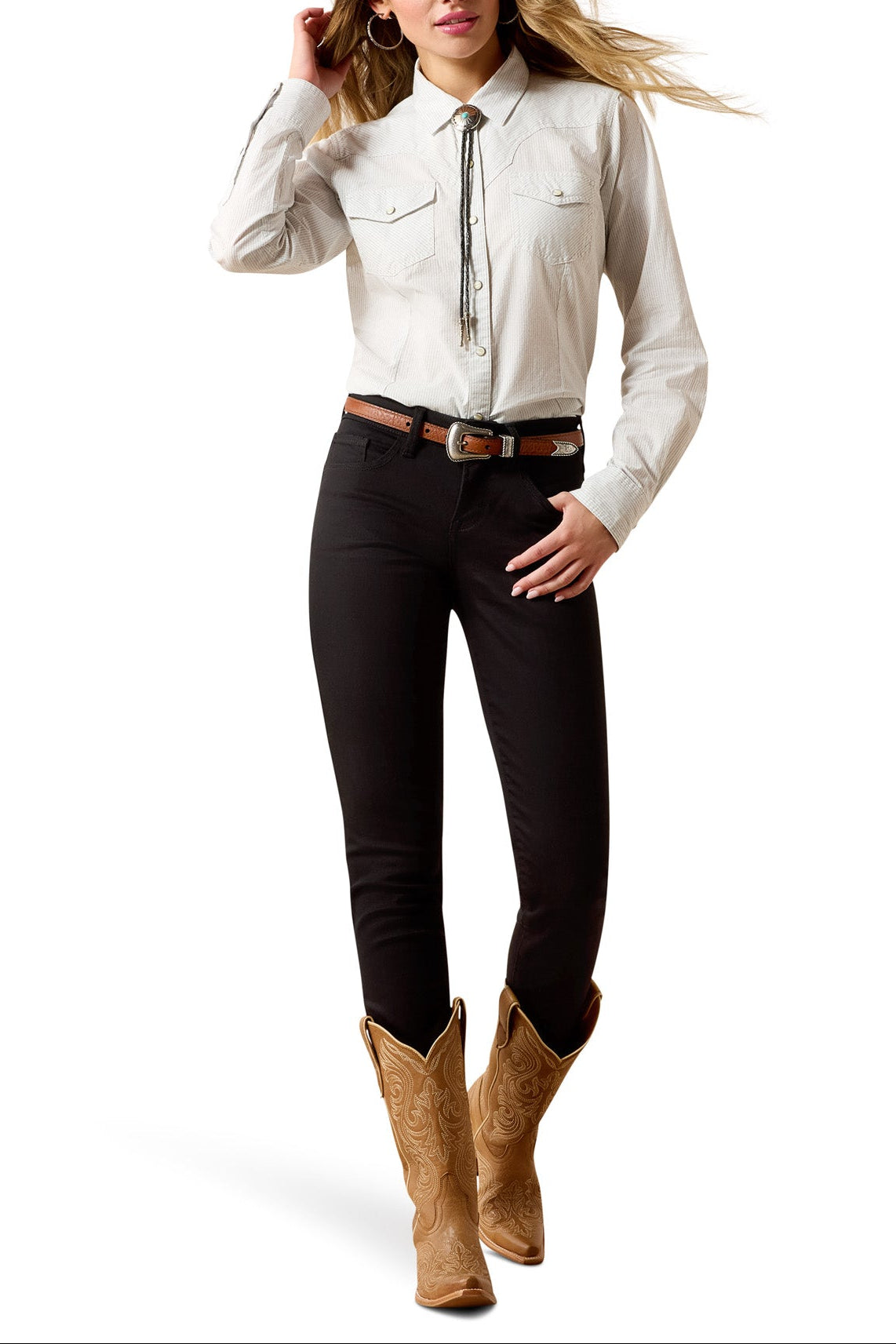• Pearl snap-front closure for a distinctive Western touch