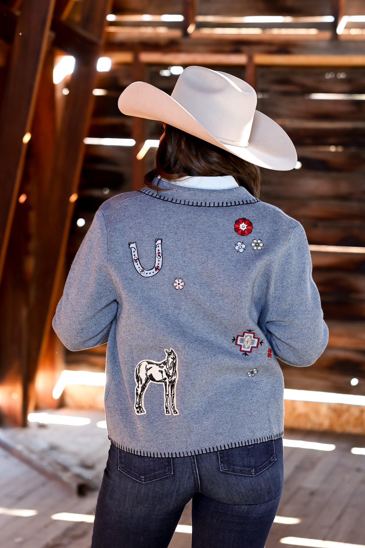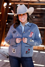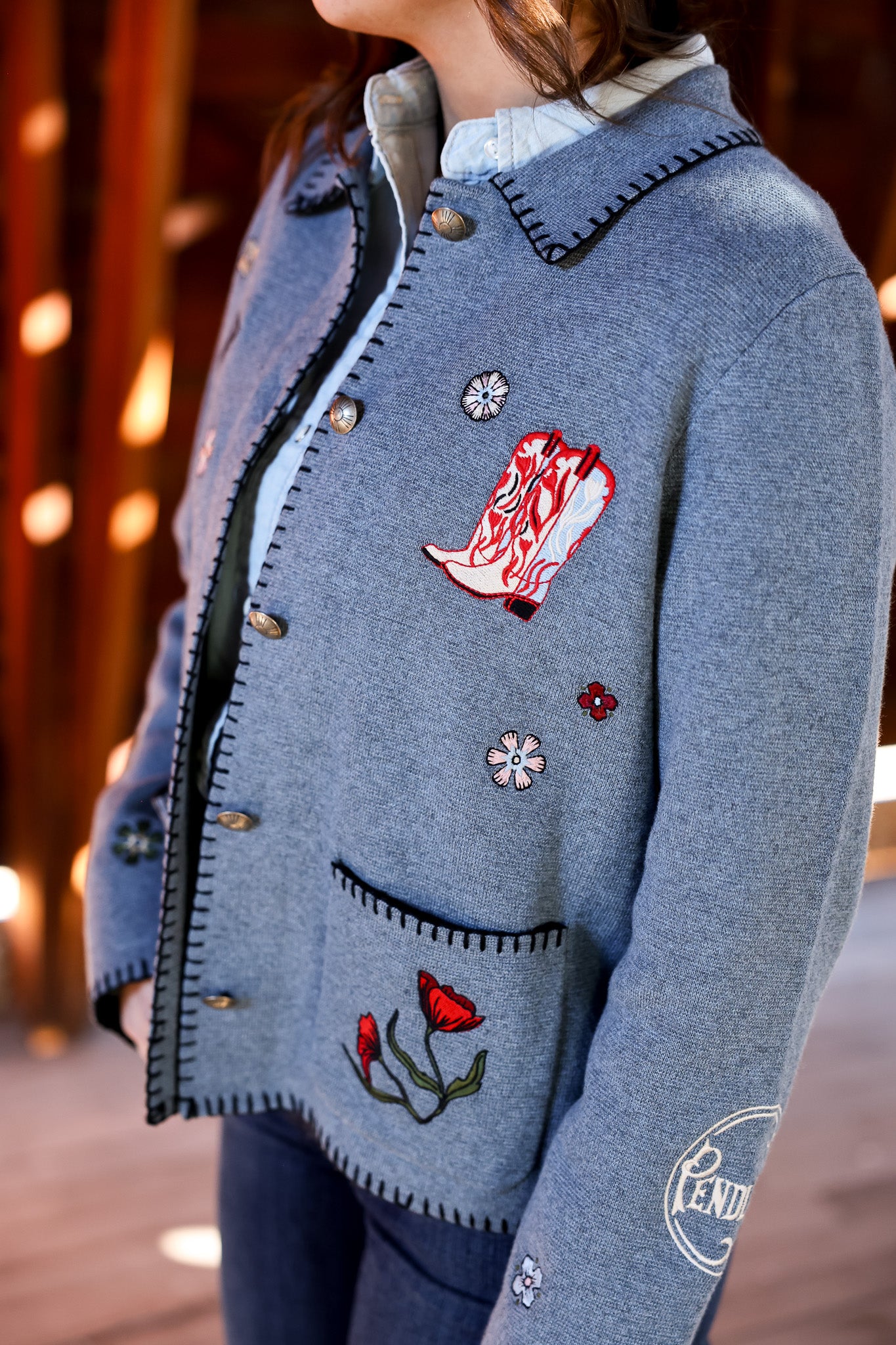 Womens Pendleton Souvenir Cardigan Denim heather womens vintage Pendleton western applique sweater Boltranchstore.com free shipping