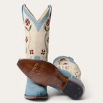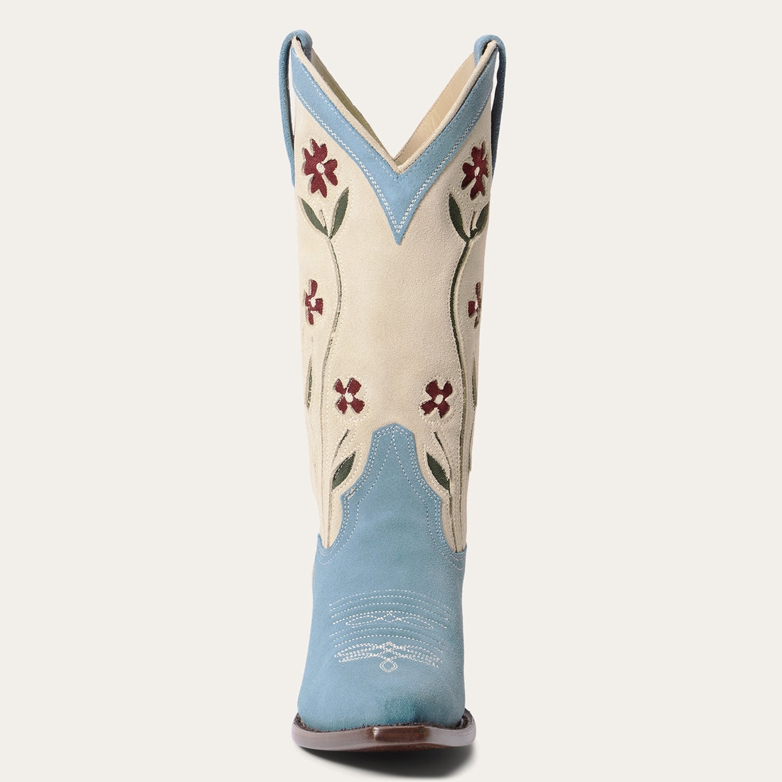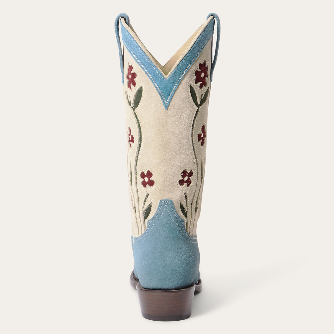 Stetson and THE GREAT Suede Floral Cowboy Boot in Washed Indigo