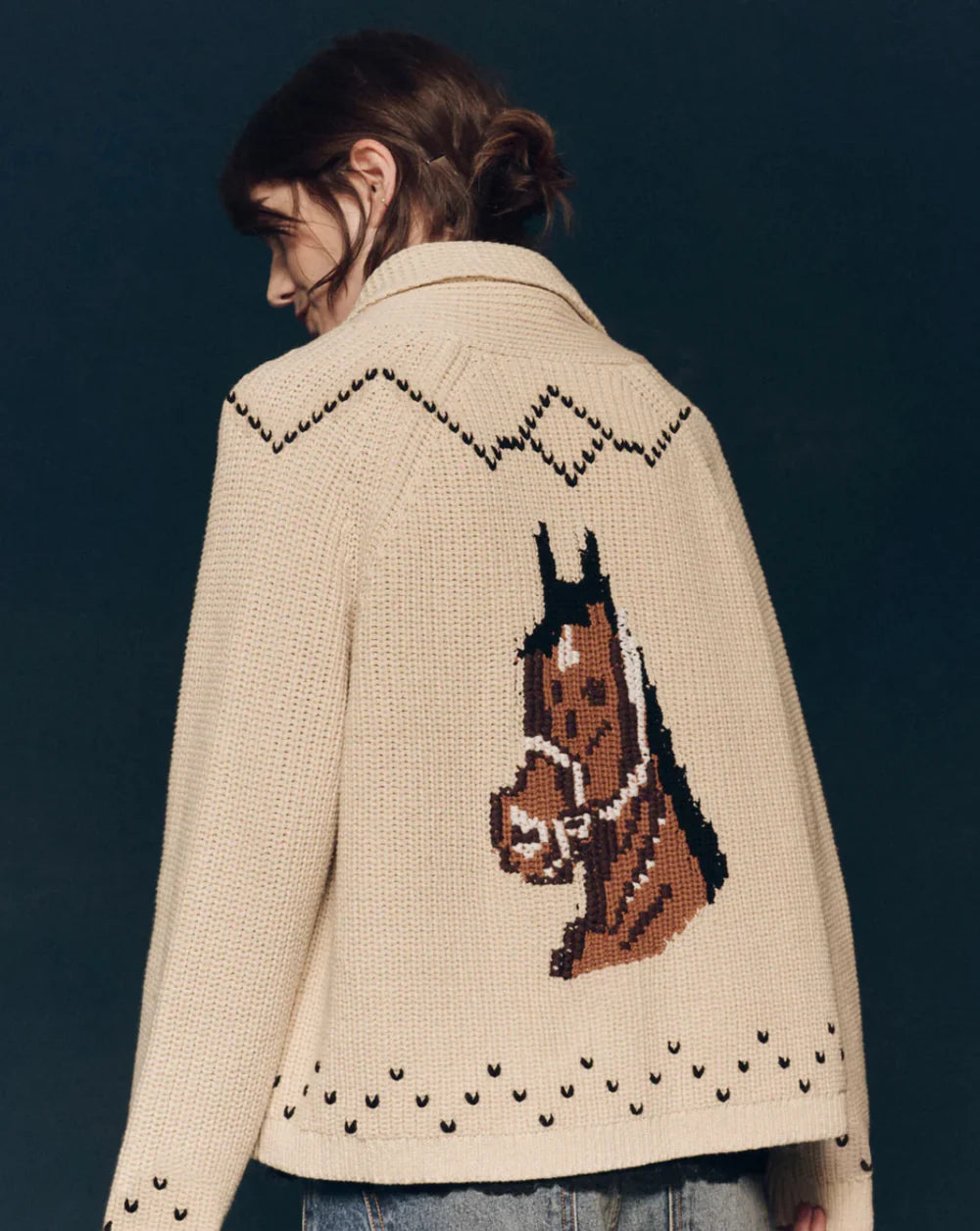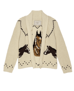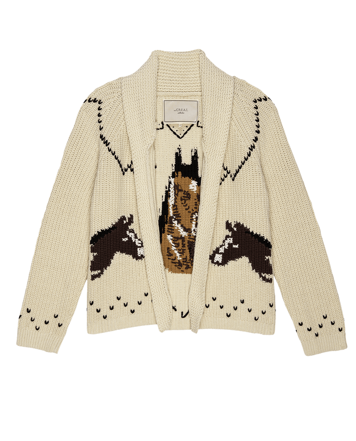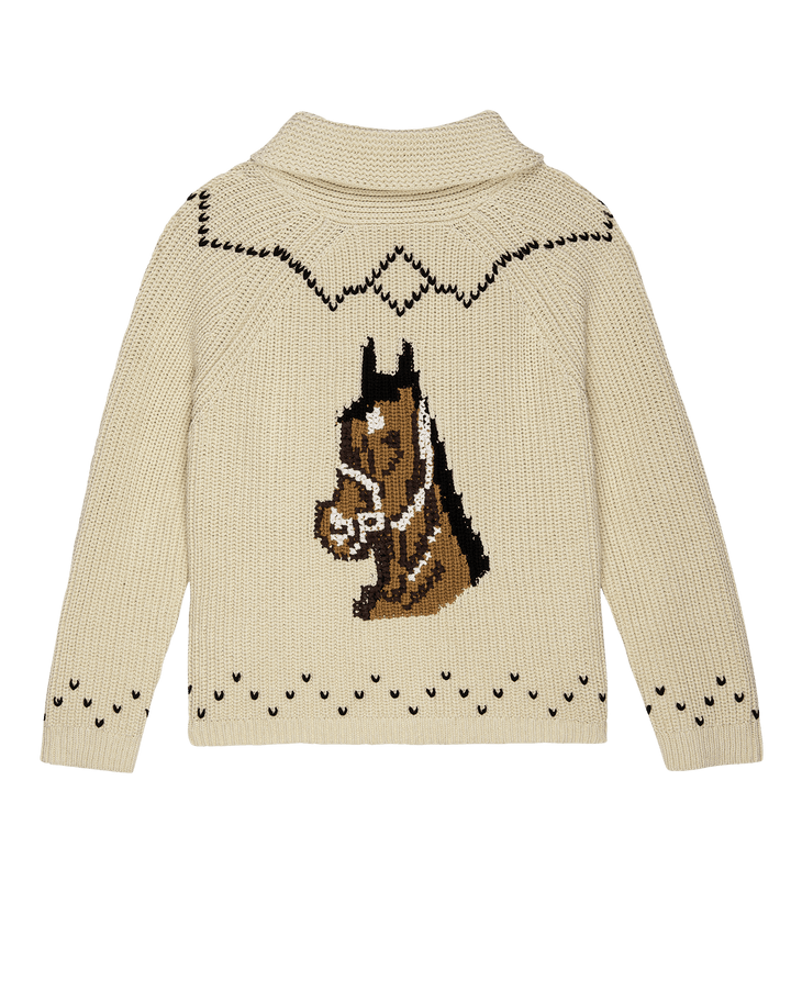 Inspired by a 1960s kids' sweater, The Horse Lodge features hand-embroidered horses on our best-selling Lodge Cardigan. Spun from a soft cotton blend yarn, this cozy piece beautifully blends western nostalgia with everyday comfort.