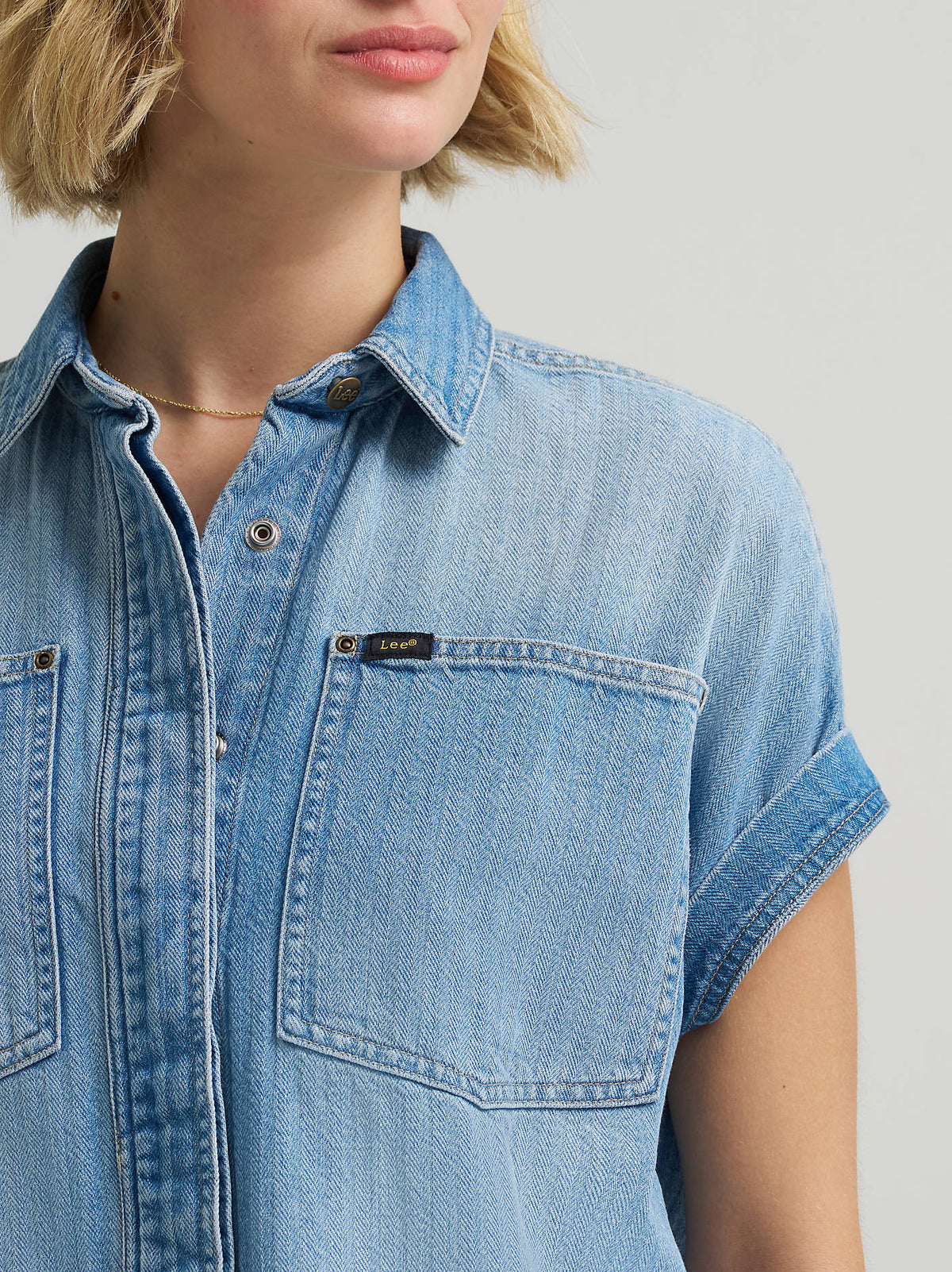 Double your denim with the Utility Shirt. Dedicated to fine-lines, this bold shirt comes with herringbone fabric for a nod to our railroad heritage, and a hidden button panel for a crisp, clean look every time. Fully lined along the arms and body in a regular fit with a swing back , it’s a high quality version of your favorite button-down.
