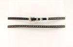 Add a touch of western flare to your hat with the Horse Hair Braided Hatband. Made from high-quality horse hair, this hatband features a unique braided design in black with tan accents. The belt-style adjustment with a silver buckle allows for a customized fit. Measuring 27 inches in length and 0.37 inches in width, this hatband is the perfect accessory to personalize your hat and showcase your western style.