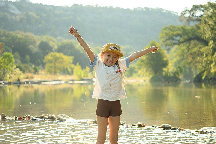 Say hello to the Yeehaw hat. Y'all know the perfect child for this snapback hat. Those hootin', hollerin', ruffian kids. We're used to 'em over here on River Road. Why? We are them. Then we made them. They're Tiny, Rowdy & Perfect.
