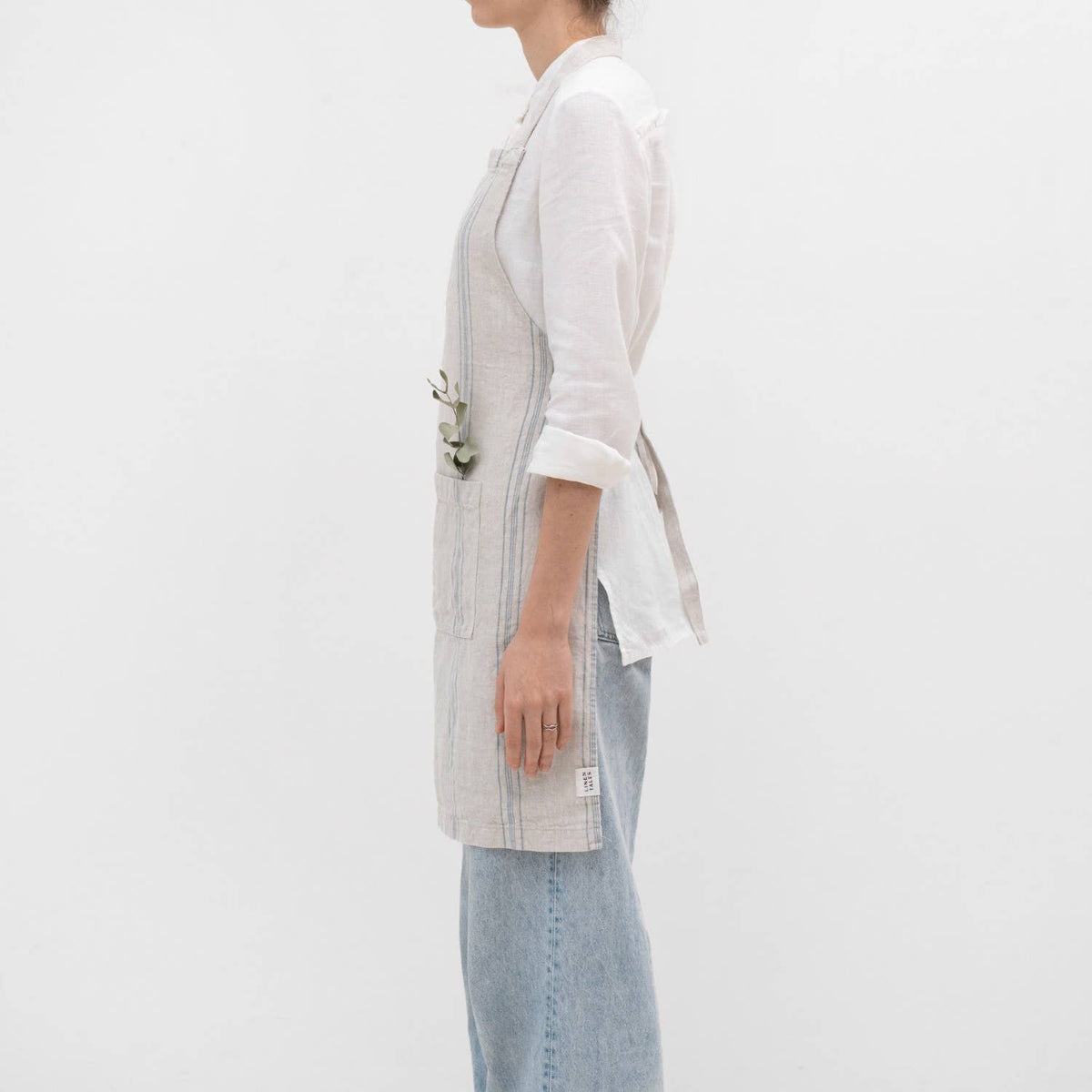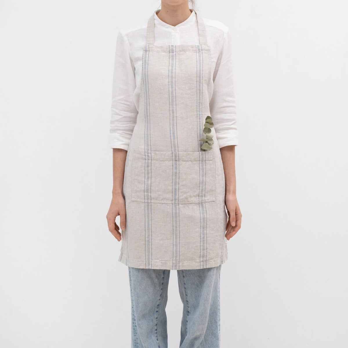 Grey Blue Wide Stripe Rustic Linen Daily Apron