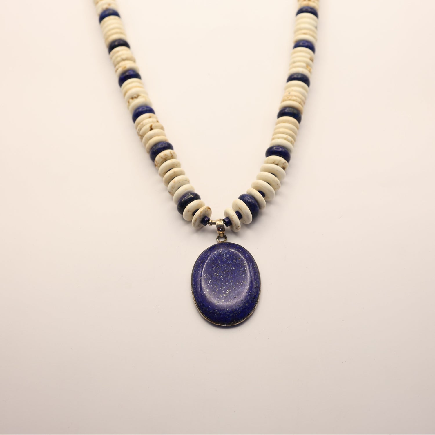 Beauty and uniqueness in this one-of-a-kind Aponi Shell and Lapis Necklace, exclusively available at Bolt Ranch Store. This vintage Native American jewelry piece captures the essence of history and culture, making it a truly special addition to your collection.