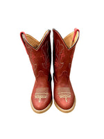 Let your child shine in the Rodeo boots—where Western tradition meets everyday wearability. Crafted from genuine leather with a plush leather lining, these eye-catching red boots feature stunning beige embroidery that turns heads. The soft round-toe silhouette and side zipper deliver comfort and convenience, making mornings hassle-free. A 1¼" heel and rubber outsole provide stability for active kids, while the single-stitch welt construction ensures durability season after season. Perfect for children needing extra room around the ankles, these boots combine authentic ranch style with practical comfort. Sizing runs small, so size up for the ideal fit.