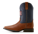 Ariat Youth Freedom Rider Boot Pair of brown and blue cowboy boots with American flag design Free shipping at boltranchstore.com