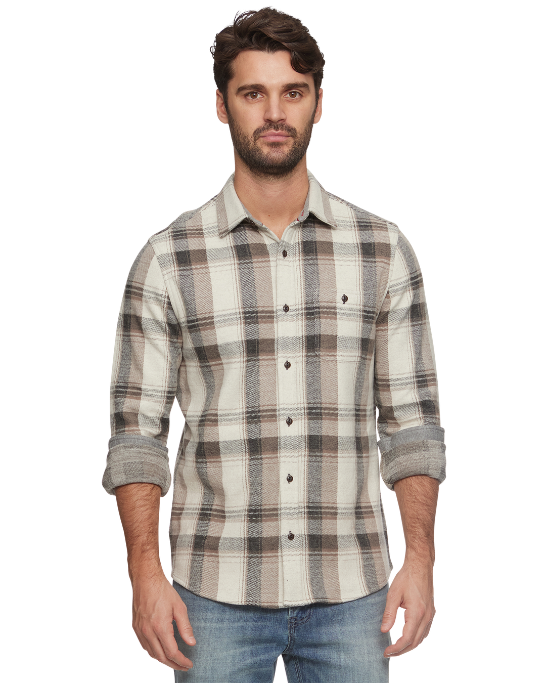 With a blend of extremely soft and stretchy knit performance fabric, you’ll find yourself reaching for this fall favorite all season long. Layer over your favorite tees, or on its own– this endlessly versatile flannel can be worn anytime, anywhere. Contrast fabric inside collar stand, back yoke, front placket, and sleeve cuffs. Single front chest pocket; button closures. Tailored athletic fit.