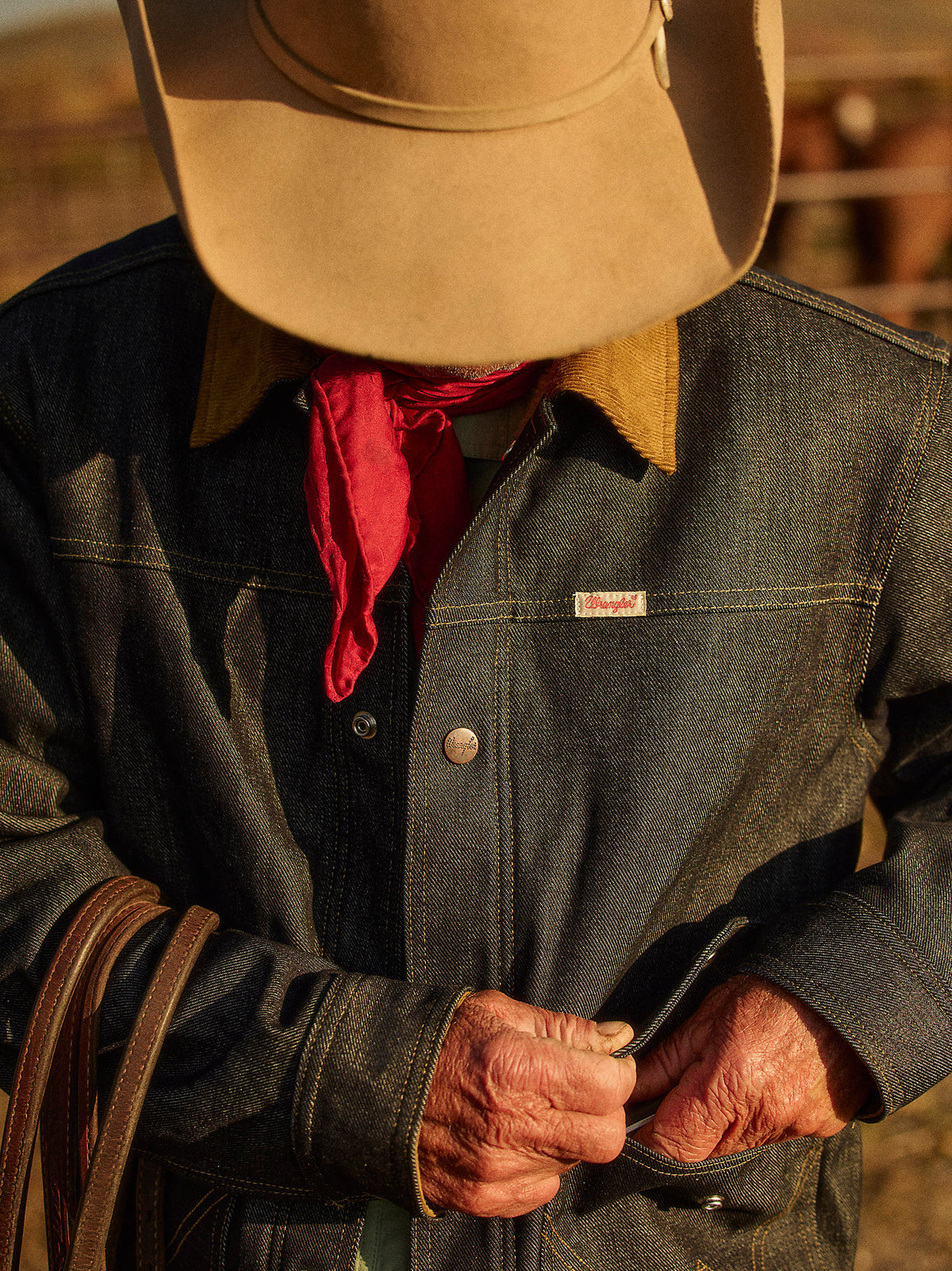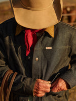 From foul weather to long days, the Filson® x Wrangler® Two-Tone Denim Work Jacket doesn't rest on its laurels—it gets going. It’s made of 14.5 oz. 100% cotton denim in a true-blue indigo that only gets better the more you break it in. You’ll also have time-honored corduroy at the collar and cuffs, as well as high-pile fleece lining through the body and insulation through the sleeves to warm you up when the days grow cold. It comes with two large lower patch pockets with our hallmark ‘W’ stitching and Filson’s signature flaps. This jacket will stand up to any task on that to-do list of yours.