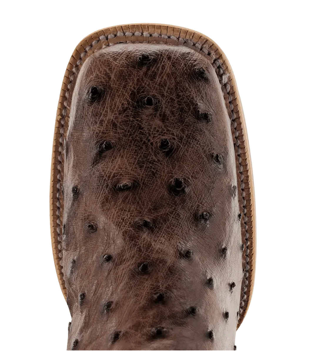 R. Watson presents these kango tobac full quill ostrich and Tuscany meil exotic western boots. These boots have a 10 row stitch pattern, R. Watson comfort system, all leather stacked heel, counters, solid steel shank, and 10 iron outsole. 11″ total in height.