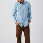 The Reagan is a pearl snap masterpiece. Crafted from 100% denim chambray, the Reagan combines classic Western heritage with rugged durability. The iconic pearl snap closure and dual breast pockets with matching snaps give this shirt a functional yet timeless look, while a Western yoke over the shoulders adds a touch of craftsmanship that’s both practical and stylish. Designed for life outdoors, whether you’re on the trail, in the field, or around the fire, the Reagan is made to stand the test of time and keep up with every adventure. Pearl snap closure. Dual breast pockets with pearl snap closure. Classically styled western yoke over shoulders. Trim fit built for work, movement, and everything in between