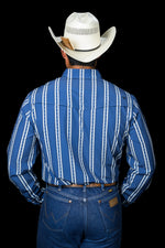 Ferrell The Tucker Snap Shirt in Blue a snap shirt with a vertical cream line at boltranchstore.com