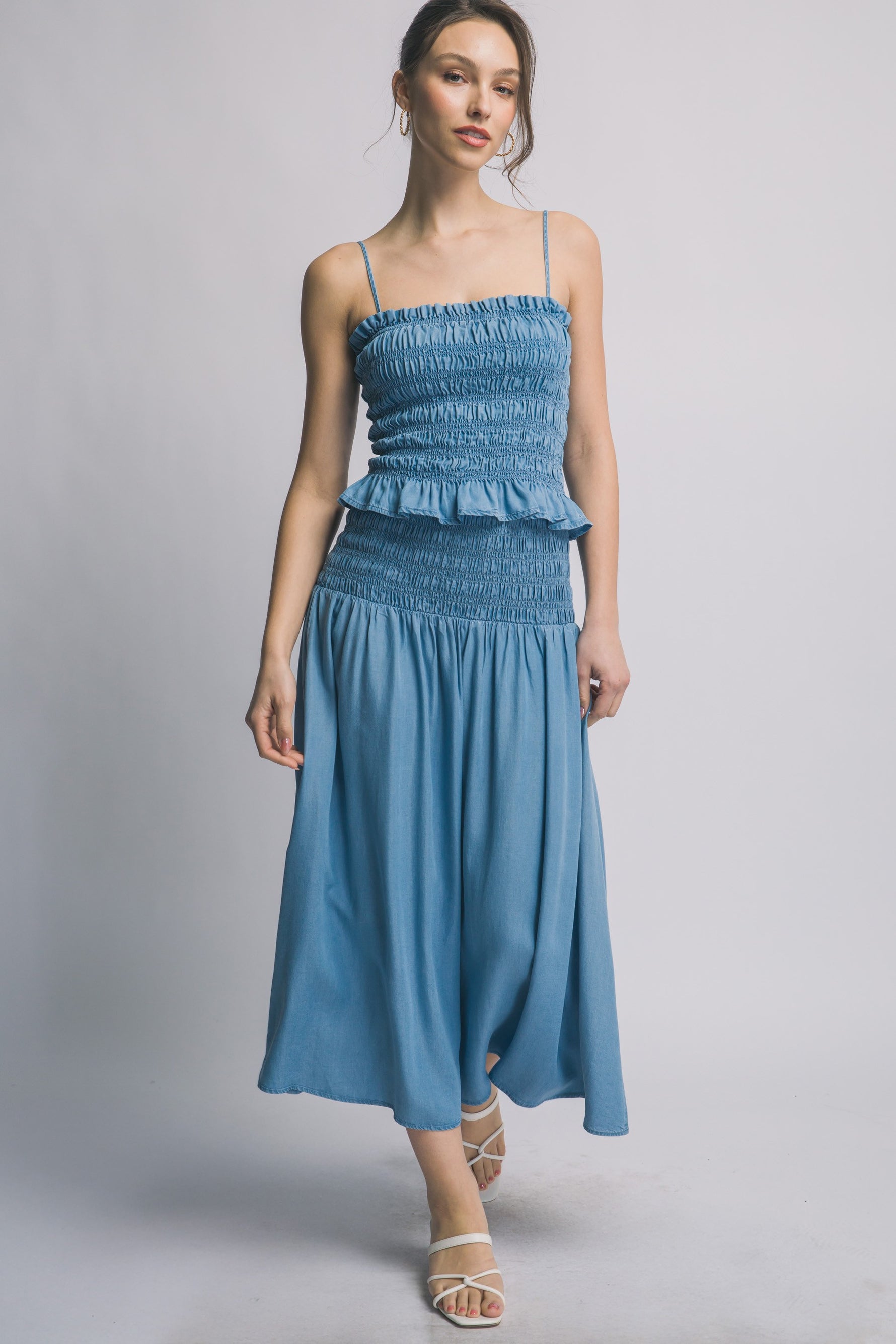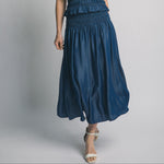 This skirt displays effortless elegance and has a stretchy smocking at the bodice that ensures a comfortable, flattering fit. Perfect for casual outings, garden parties, or relaxed evenings out.