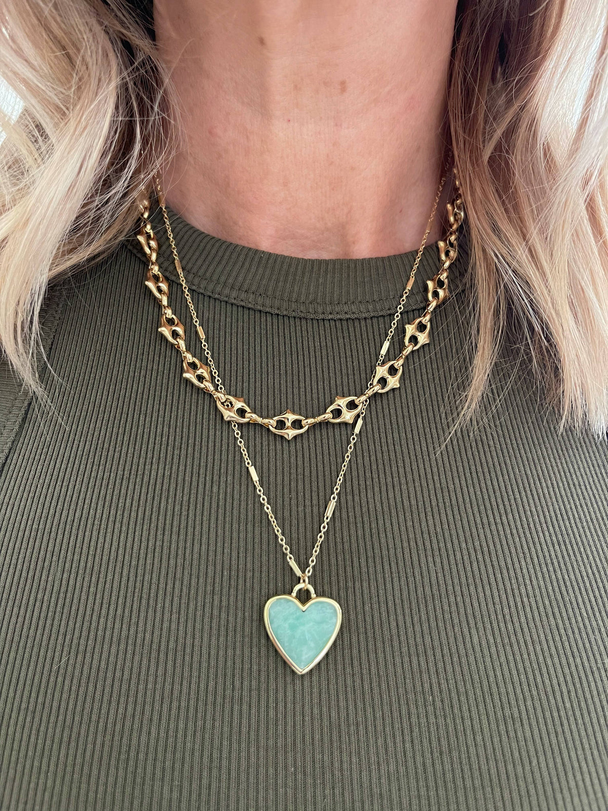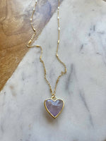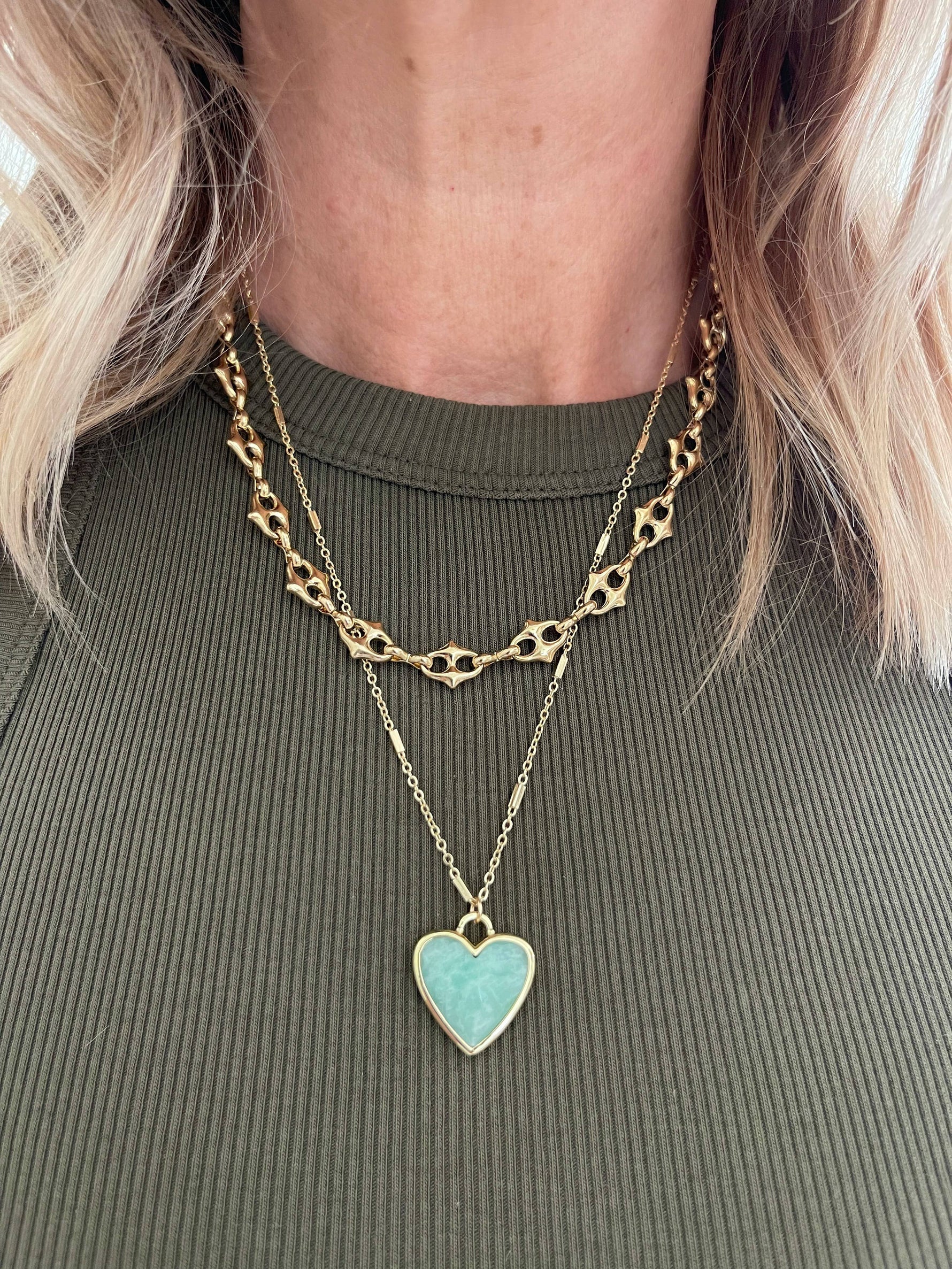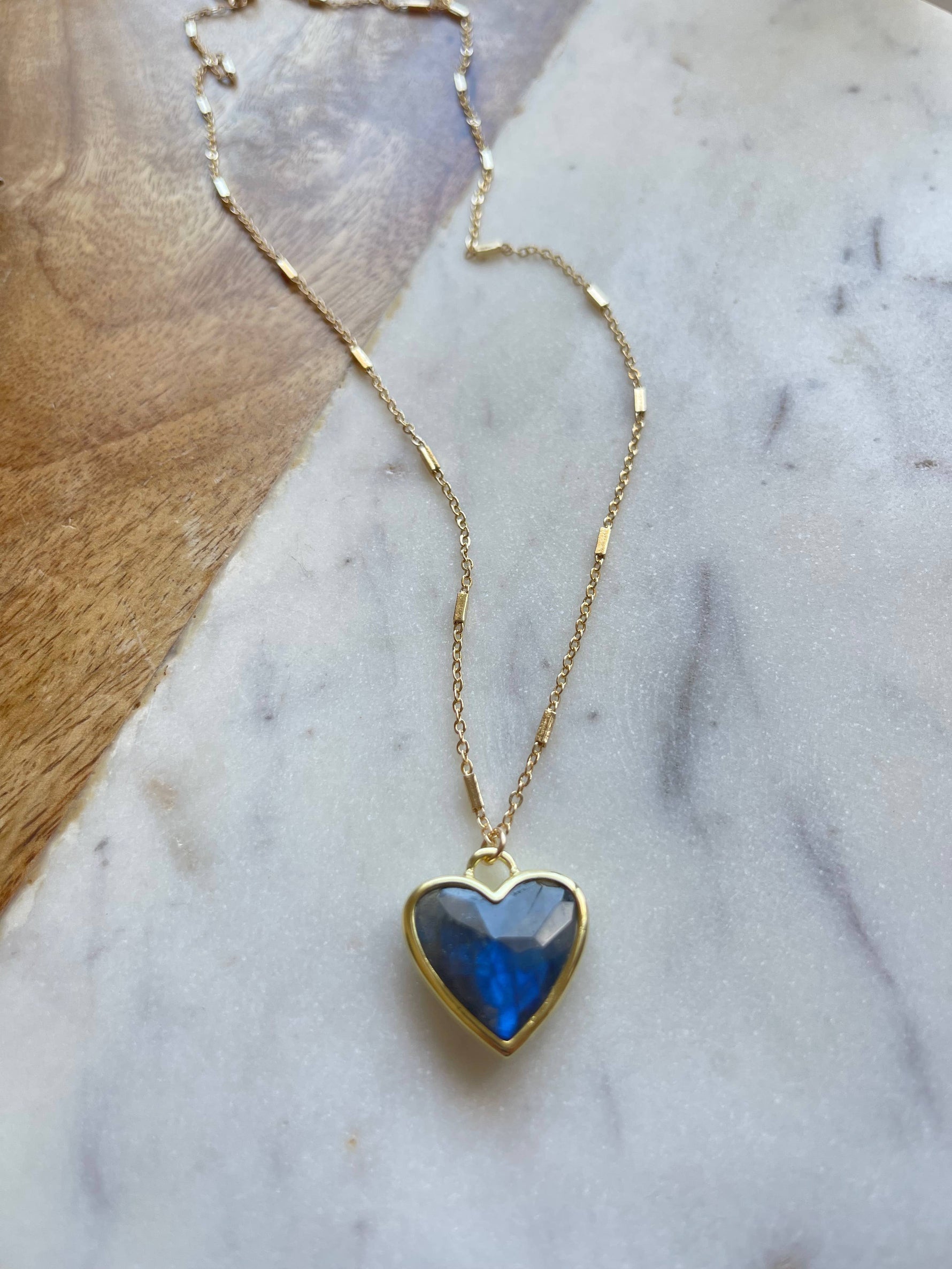 Whenever she steps outside, Jalsa spreads a wave of joy across the narrow streets. She has a magical knack for painting her world with vibrant colors that seem to dance on her clothes and accessories inspiring others to embrace their inner vibrancy and break free from the chains of conformity. Gold gilled barrel chain with gemstone heart edged in gold, in your choice of colors. *Gold filled materials *Natural, faceted gemstones *Total necklace length 20" *Pendant measures 3/4"