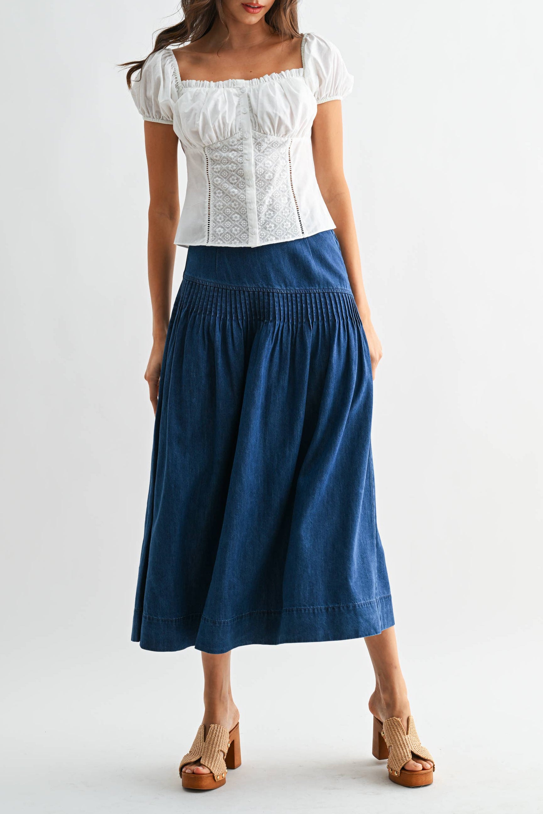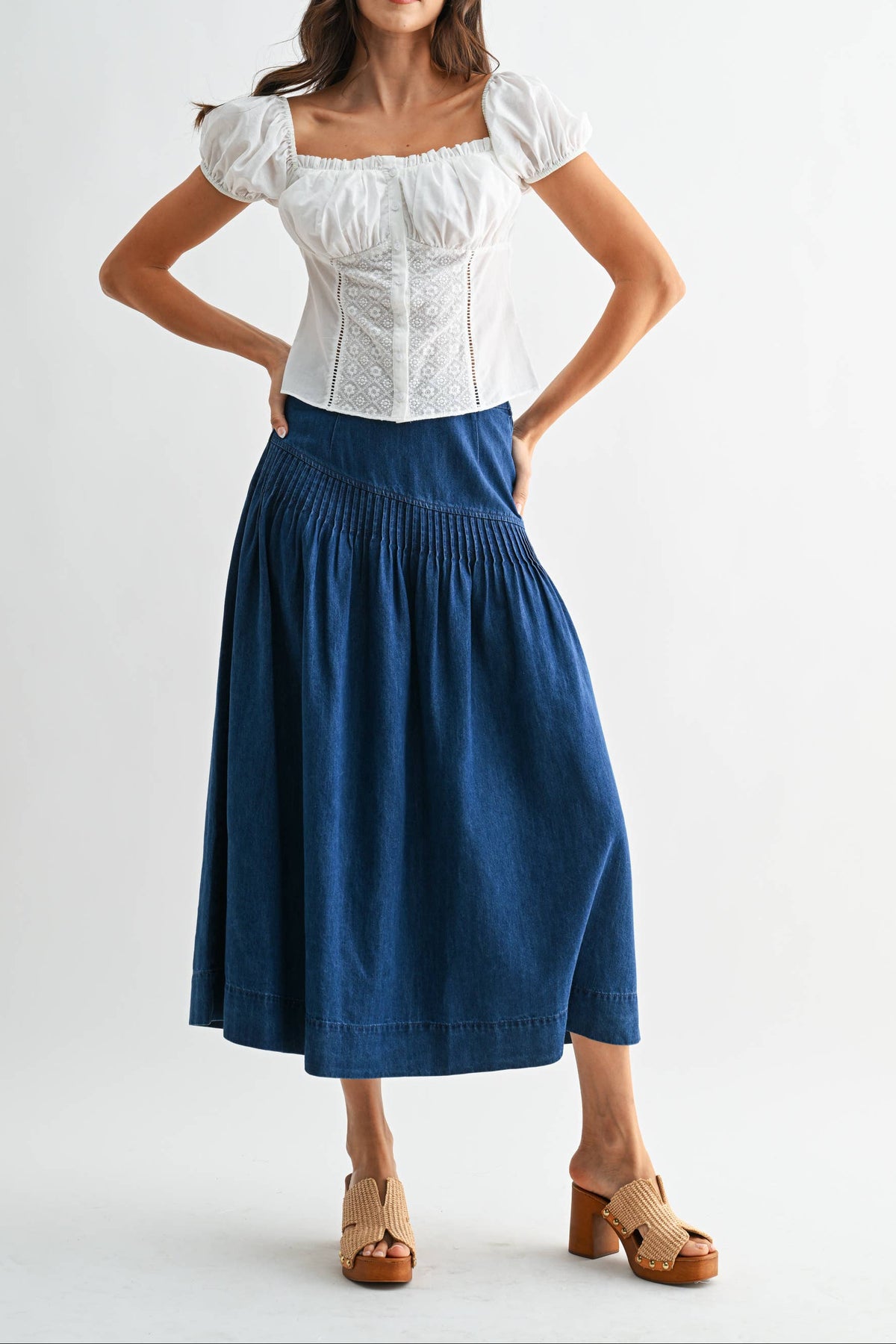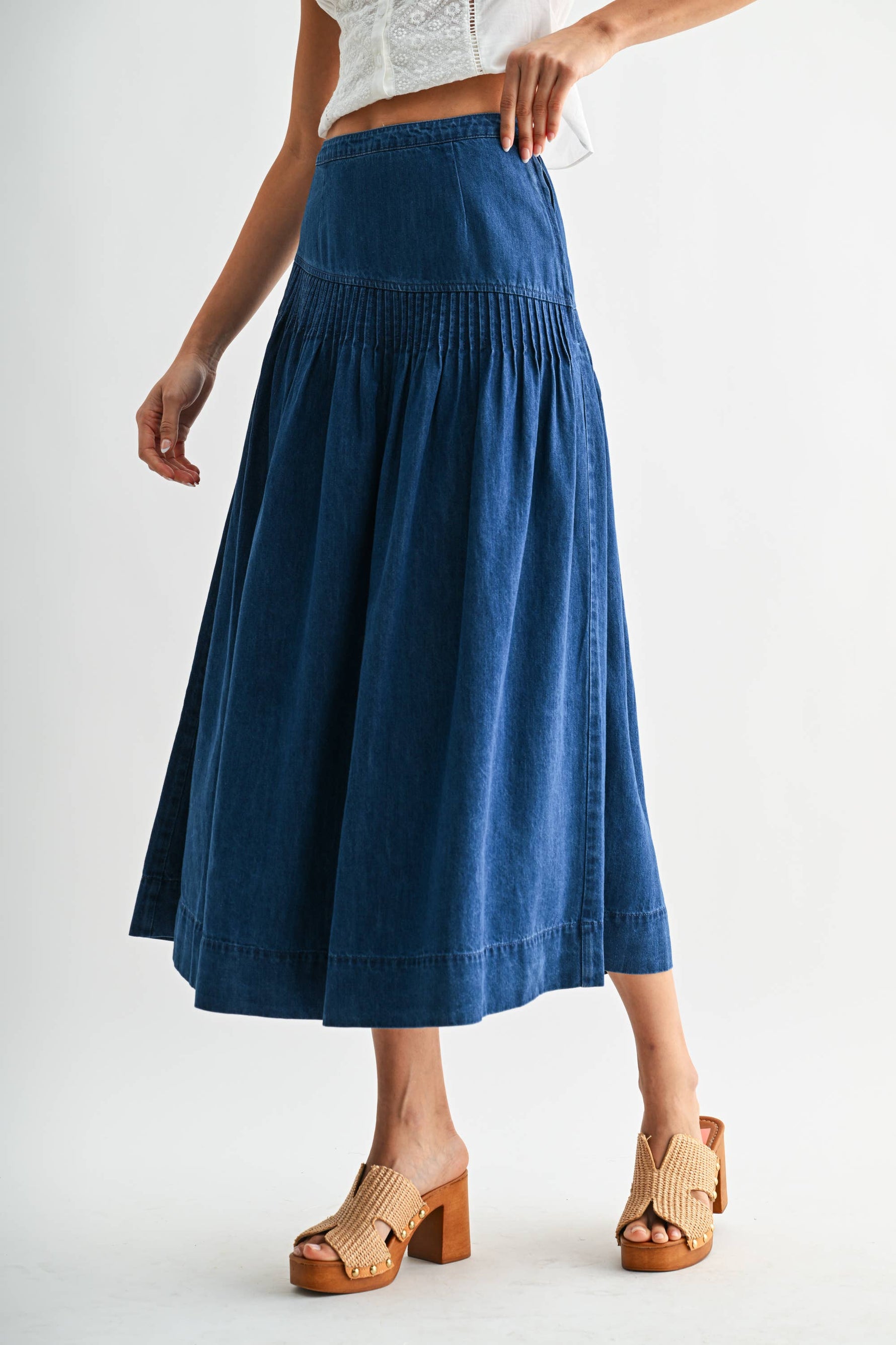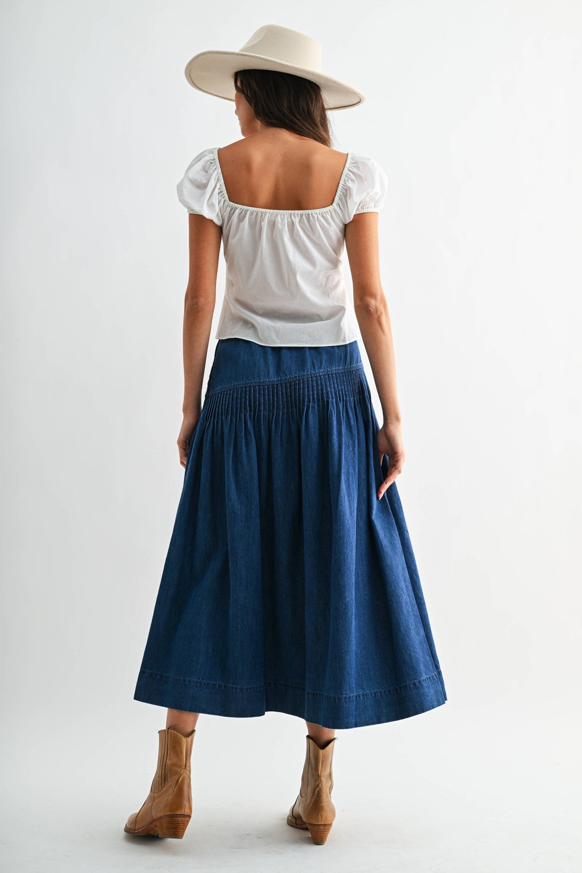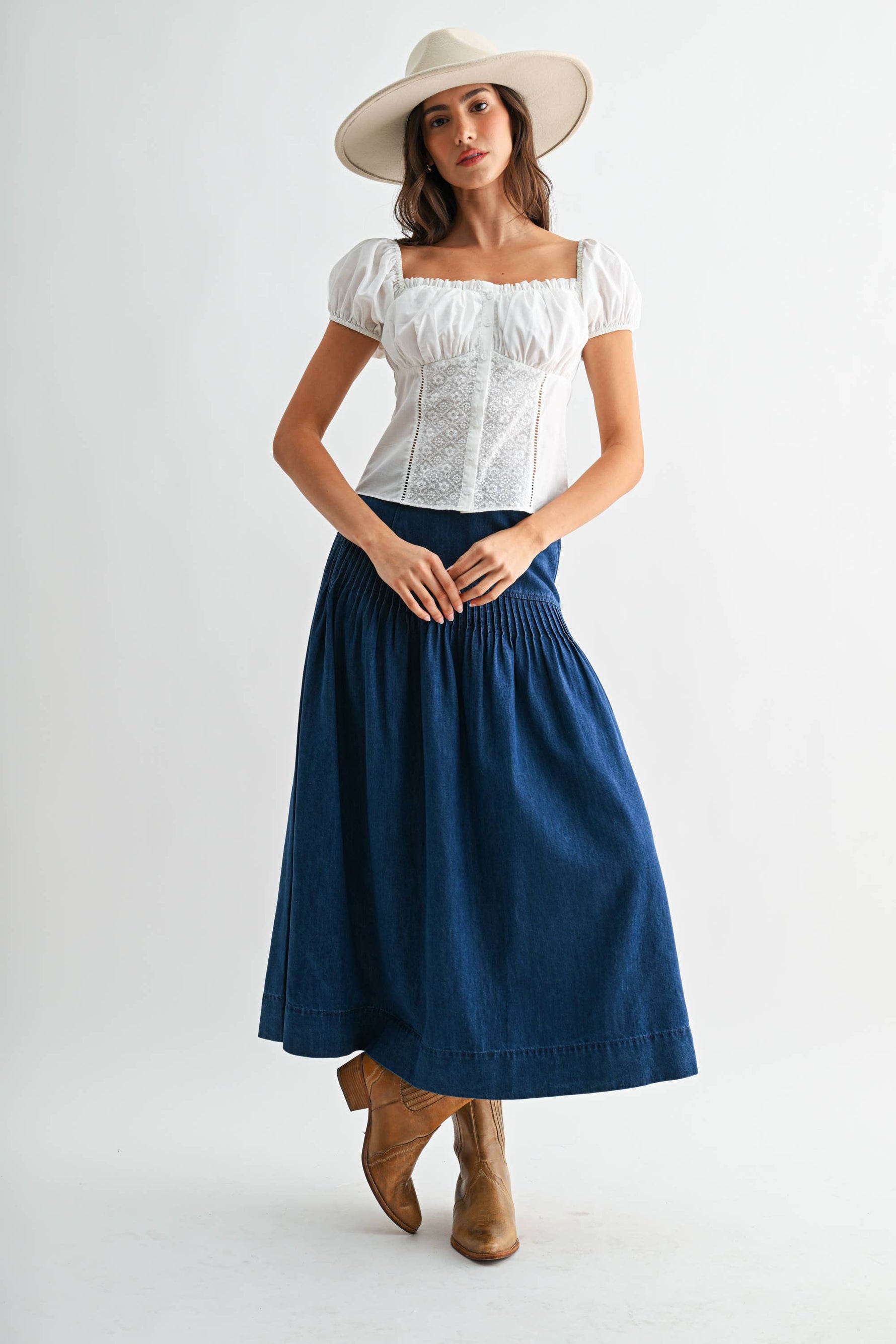 Kiera Denim Skirt high rise midi cute popular western fashion denim skirt at Boltranchstore.com Free Shipping