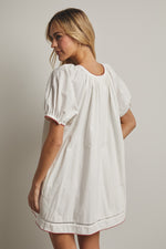 Emma Puff Sleeve Button up Mini Dress womens white scoop neck dress summer beach casual popular dress for woman teen Boltranchstore.com Free Shipping