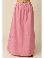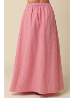 Our Kasey Gingham Maxi Skirt features an elastic waistband with lightweight linen blend fabric for an easy, comfortable fit and a flowy A line silhouette with full length coverage and side cut out detail for movement.