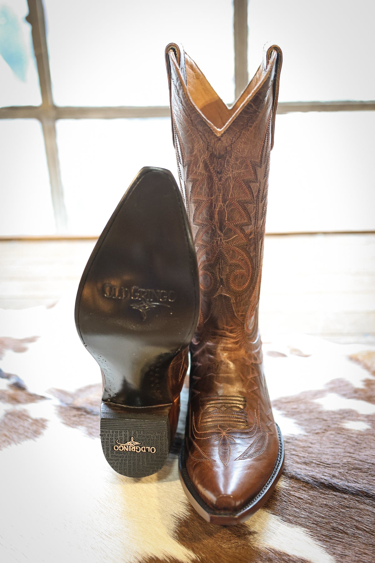 Step into timeless Western style with Old Gringo Nevada Cowboy Boots in rich peanut leather. These authentic boots feature a classic snip toe silhouette and intricate stitching details that showcase genuine craftsmanship. Built for both the saddle and the street, the premium leather construction offers durability and comfort that improves with wear. Perfect for ranch work, rodeos, or making a bold fashion statement, these boots deliver the rugged elegance every cowboy and cowgirl deserves.