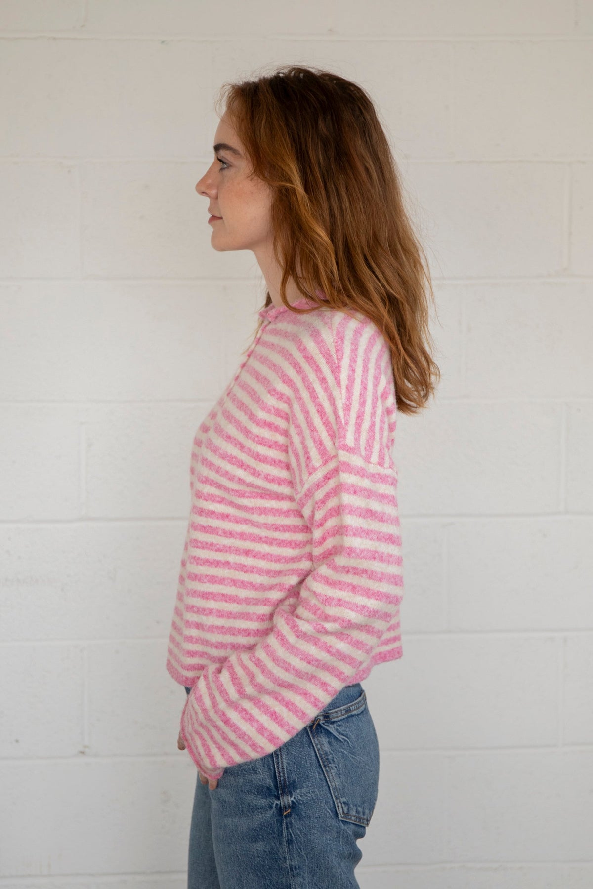 Piper Henley Pullover buy at Boltranchstore.com western boutique Free Shipping pink striped button shirt long sleeve