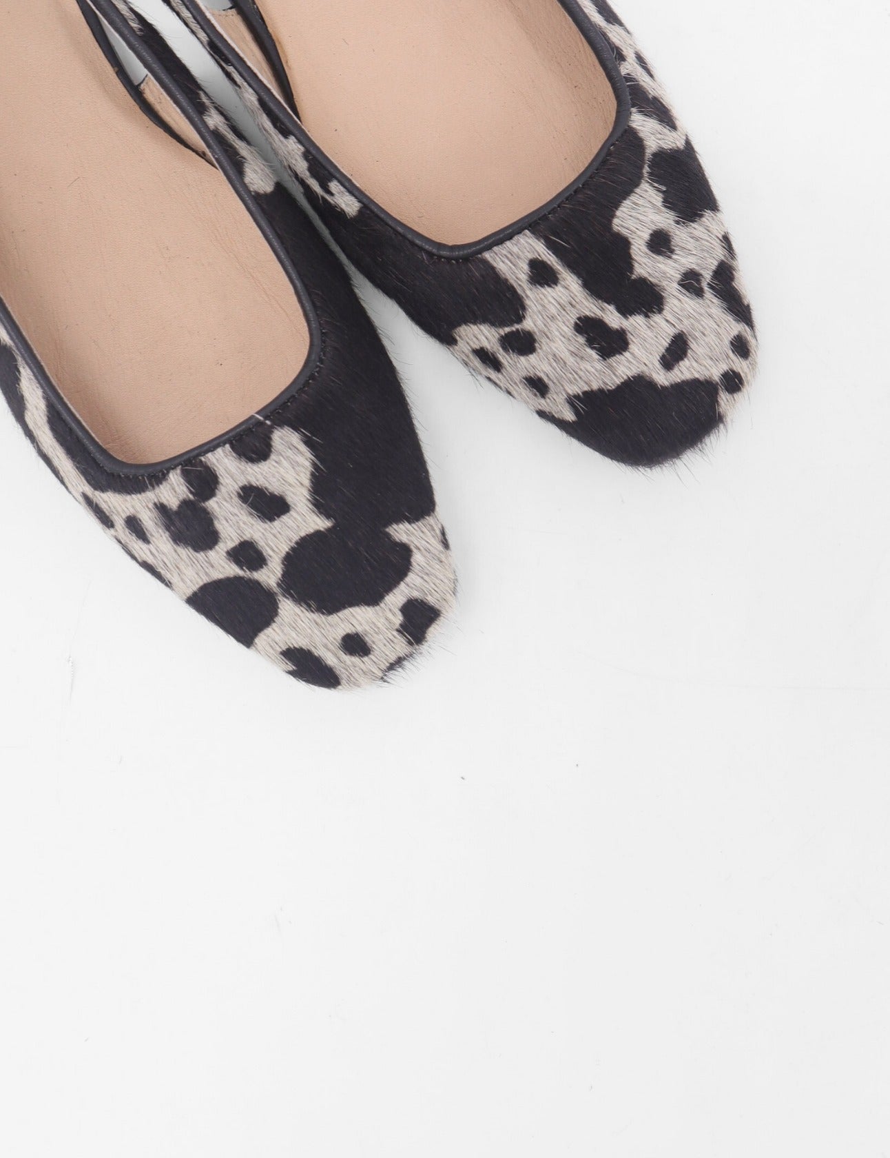 Black and white patterned slingback flat shoe a perfect western shoe at boltranchstore.com