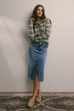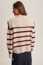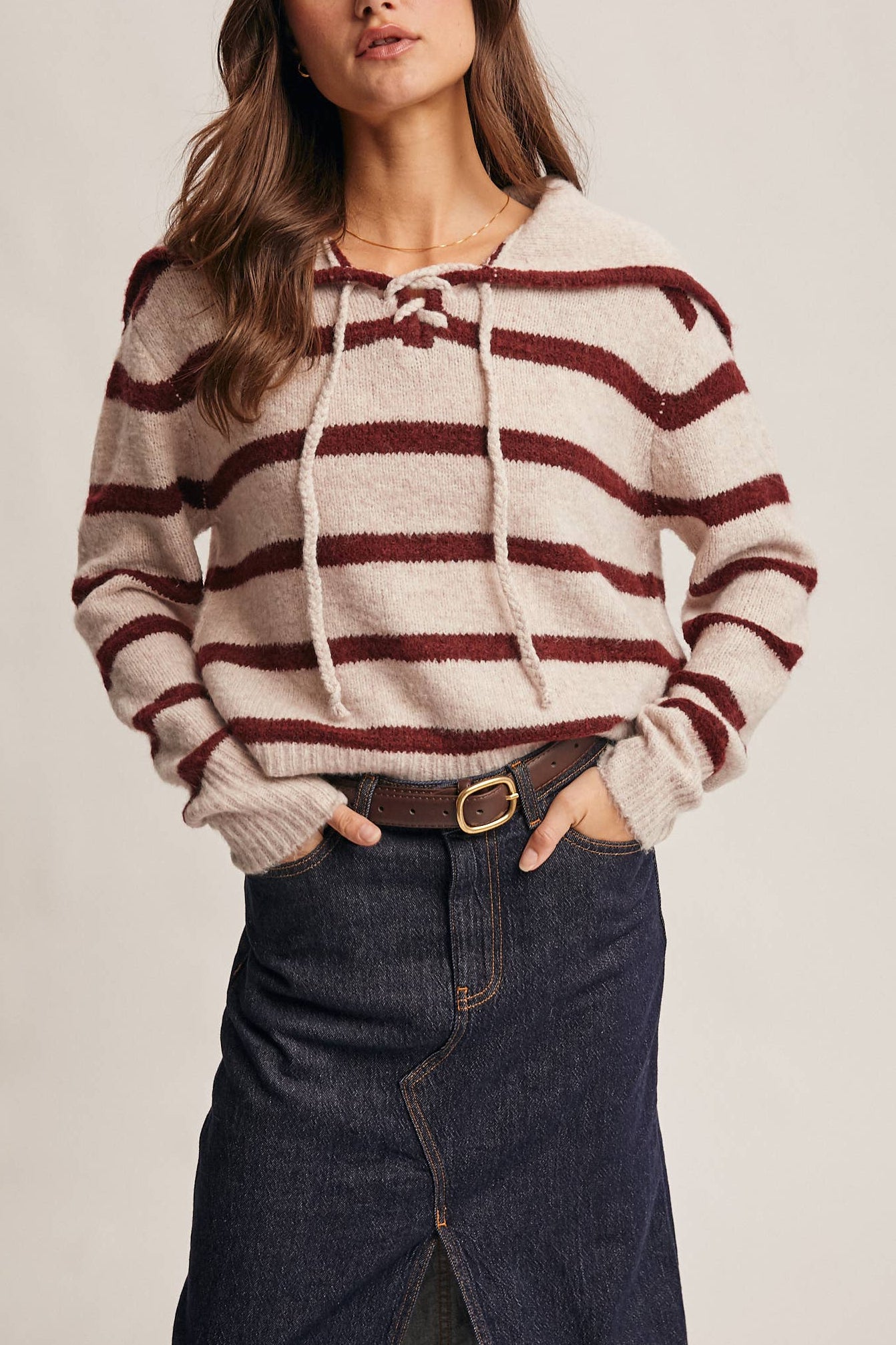 With its vintage sailor neckline and soft brushed texture, this striped pullover is the perfect mix of cozy and cute-layer it over a lace dress for contrast or wear with jeans and boots for a casual Western-inspired twist.