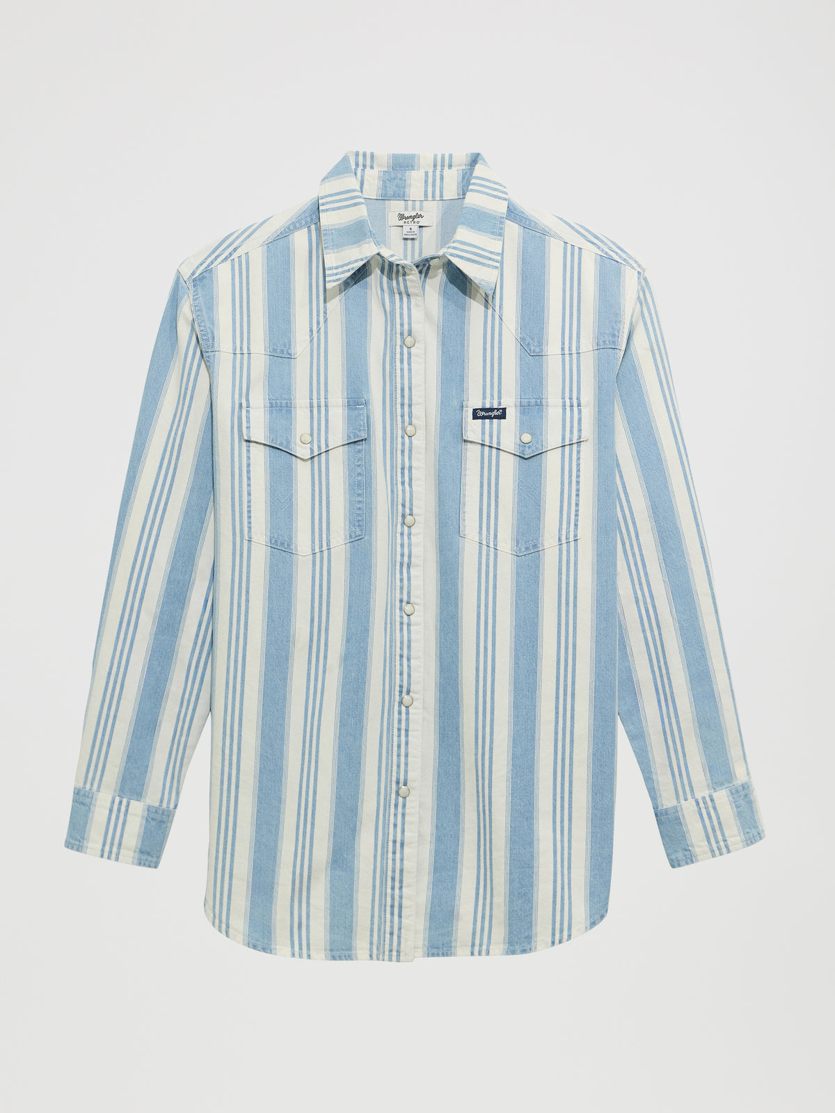 Brushpoppers aren’t just for cowboys. Our Women's Wrangler Retro Brushpopper Boyfriend Western Snap Shirt combines those bold, retro-inspired stripes you love with a roomy fit that feels perfectly worn in from the very first wear. With a collar on top, single-point yokes, contrast ‘W’ embroidery, and chest pockets with flaps, this snap shirt is ready to ride. Plus, it's made of cotton to deliver non-stop comfort that only gets better with time.