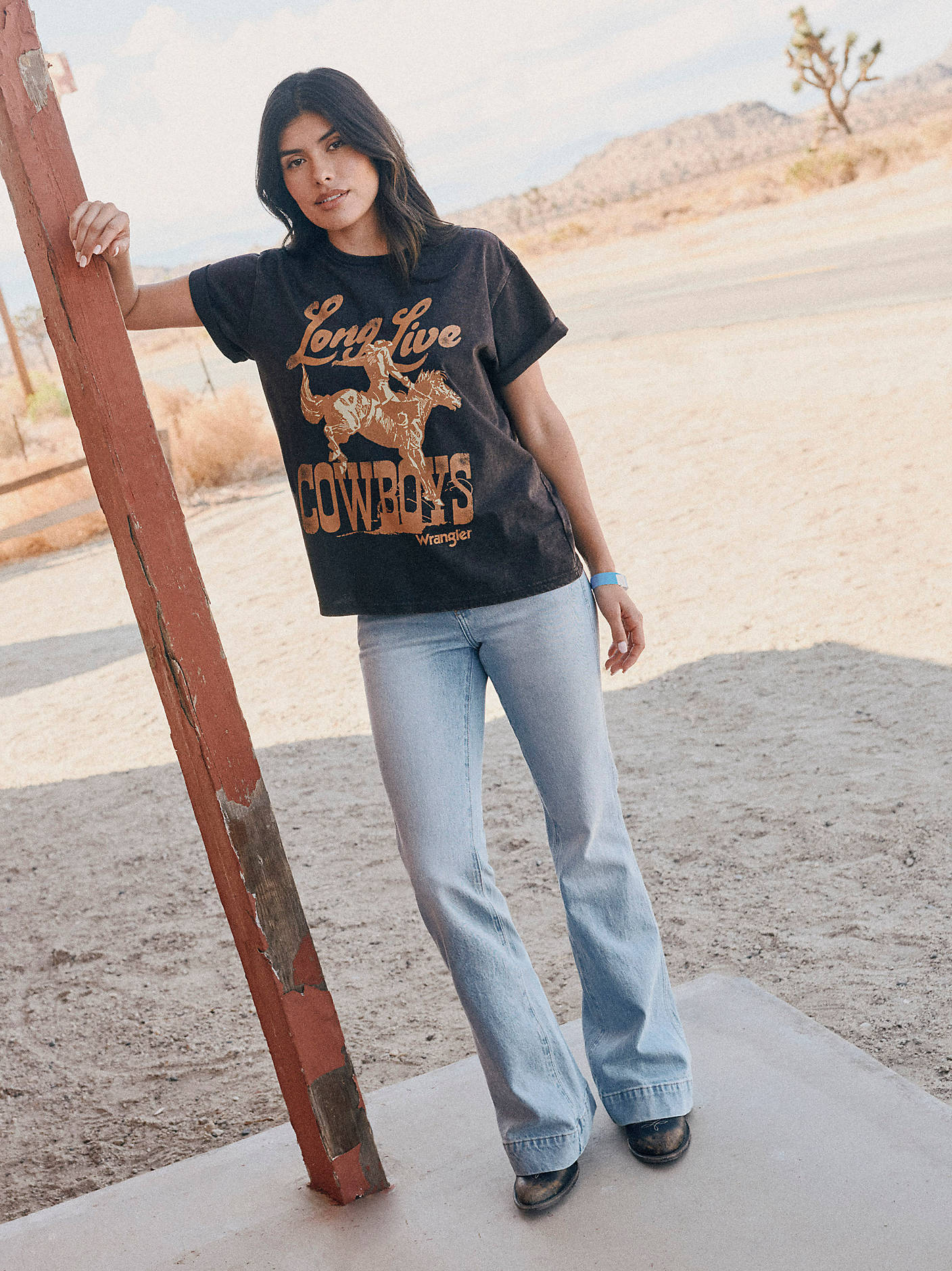 Flattering from every angle, the Women’s Wrangler Retro® Bailey High Rise Trouser Jean is a best-kept secret for ladies who love volume. These denim trousers are crafted from a cotton blend with just a hint of stretch for all-day comfort. They come with a high-rise silhouette, a close fit through the thigh, and a 20.5” flared leg full of vintage vibes. Plus, the five-pocket styling, “W” pocket stitching, and logo patch bring an unmatched level of Western authenticity.