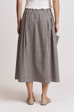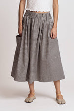 Amanda Pleat Waist Gingham Skirt buy at boltranchstore.com womens prairie skirt pockets gingham plaid brown and white elastic waist populat ballerina farm skirt free shipping