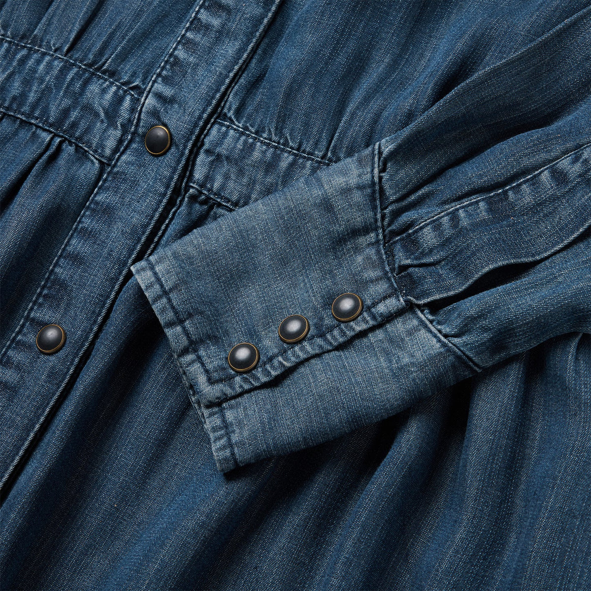 The Denim Western Maxi Dress is made from soft, breathable lyocell denim. Its full-length, two-tiered silhouette features classic western detailing—from single-point yokes to flap chest pockets, along with an elastic waist, gathered skirt, snap closure and side seam pockets. Like all of our women’s apparel, the Denim Western Maxi Dress is thoughtfully designed and crafted for lasting comfort, quality, and style—from sunup to sundown.