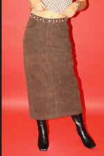 Studded Suede Midi Skirt