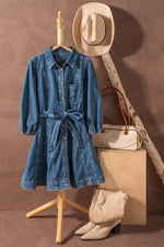 Twirl into the spotlight in the Natalie Western Denim Dress, where classic cowgirl style meets modern flair. This belted beauty features a flattering silhouette perfect for swing dancing, with a flowing cut that moves with every step. Crafted from quality denim, it captures authentic western charm while offering the comfort and freedom you need to dance all night long. Whether you're hitting the dance floor or making a statement at the rodeo, this dress delivers timeless appeal with contemporary edge.