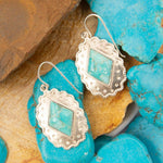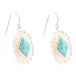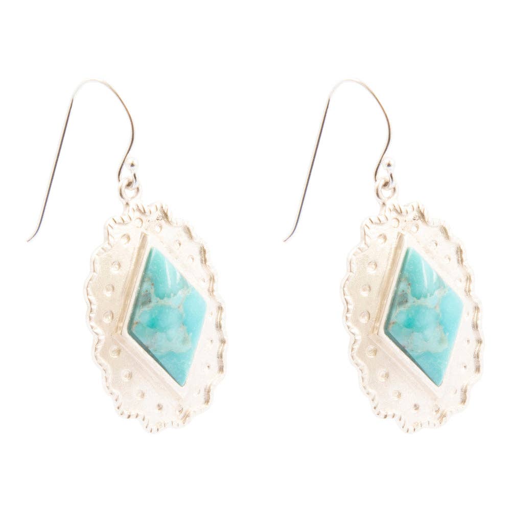 Featuring a genuine blue turquoise stone set at the center, these earrings are framed with intricate sterling silver accents. Meticulously handcrafted and polished to perfection, they offer timeless elegance with artisanal charm. Description: Blue turquoise is a captivating gemstone recognized for its sky-blue hue and natural veining patterns. It has been admired for centuries as a symbol of beauty and protection. Fun Fact: Turquoise is the designated birthstone for December, representing wisdom, good fortune, and peace. It is also considered one of the oldest gemstones ever used in jewelry. Natural variances are part of the beauty of our genuine stones. Your piece will vary slightly from the image shown.
