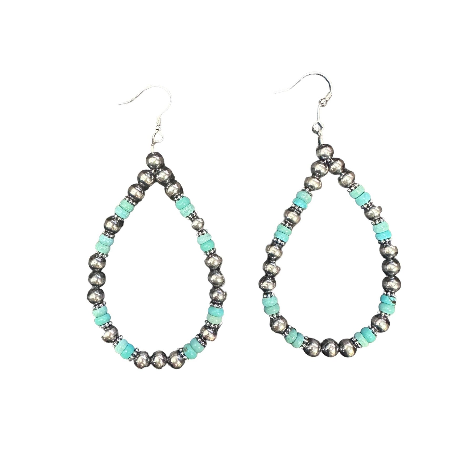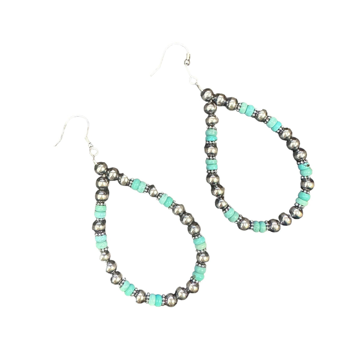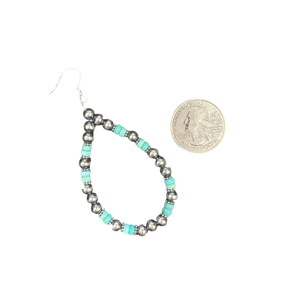 Blue Turquoise Navajo Pearl Bead Dangle Loop Earrings Sterling Silver. Measurements of these earrings are 3" long and 1-1/2" wide.