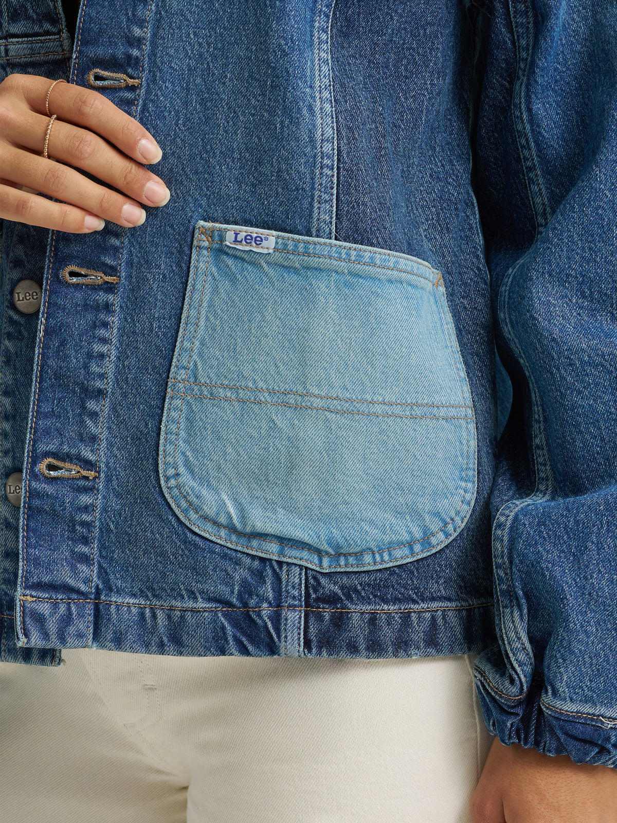 Lee Womens Patched Denim Chore Jacket the best denim jacket free shipping at boltranchstore.com