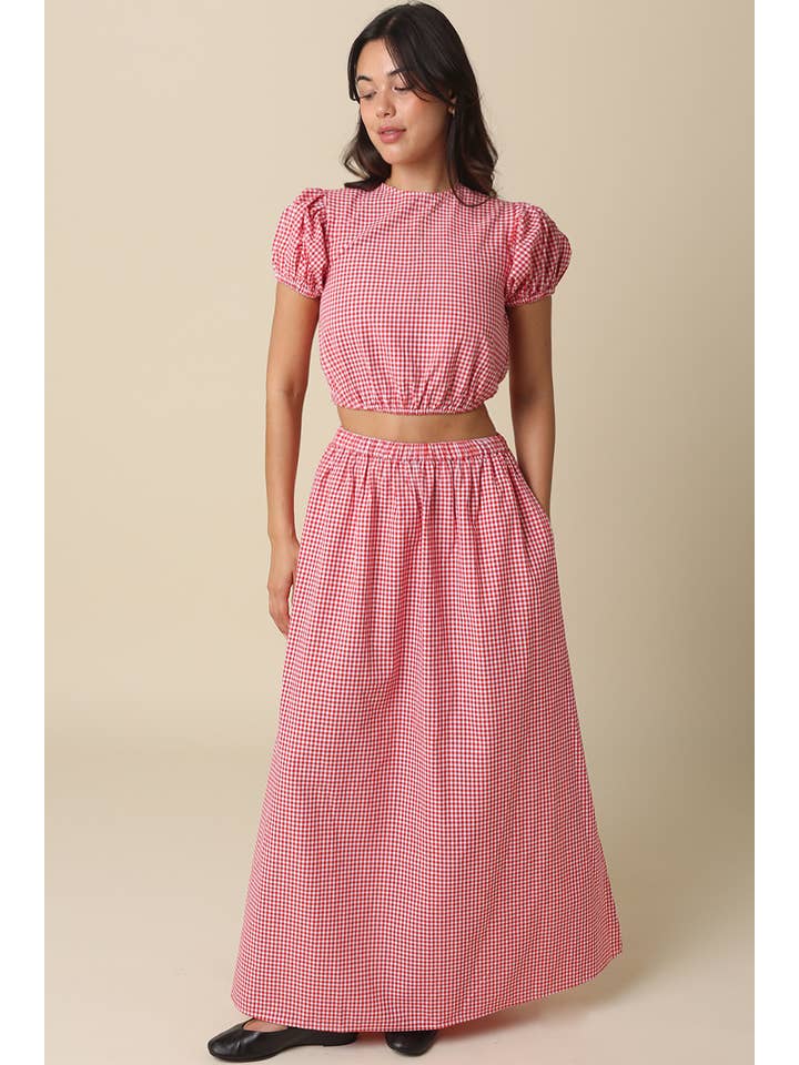Kasey Gingham Cropped Top red gingham western skirt and shirt set cute popular Olivaceous womens matching set Boltranchstore.com