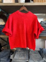 Medium weight wool knit blend with an ultra soft hand feel. Crafted into a relaxed, boxy tee silhouette with a crew neckline, dropped shoulders, and medium length half sleeves. Relaxed ribbing on sleeves, neckline, and hem.