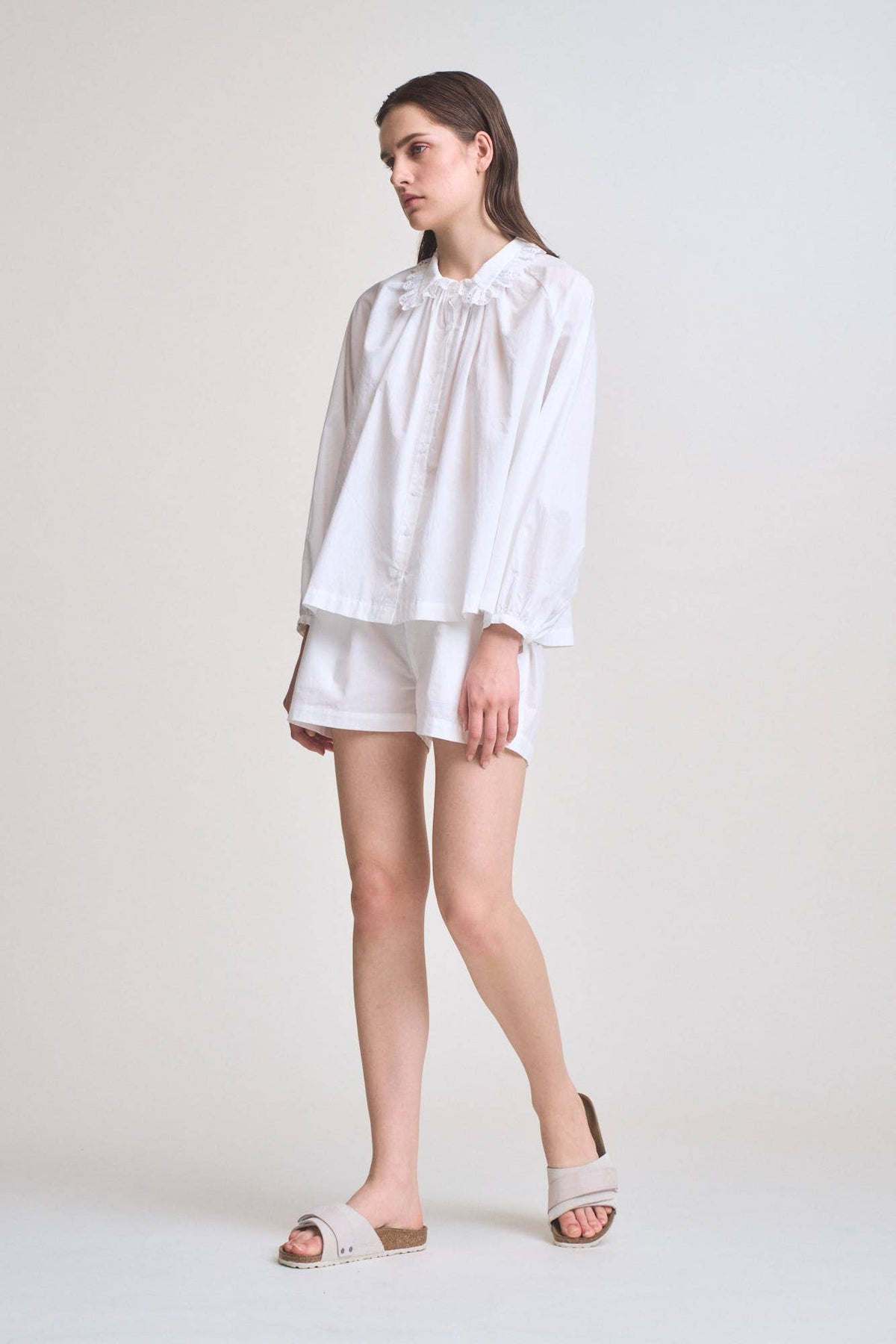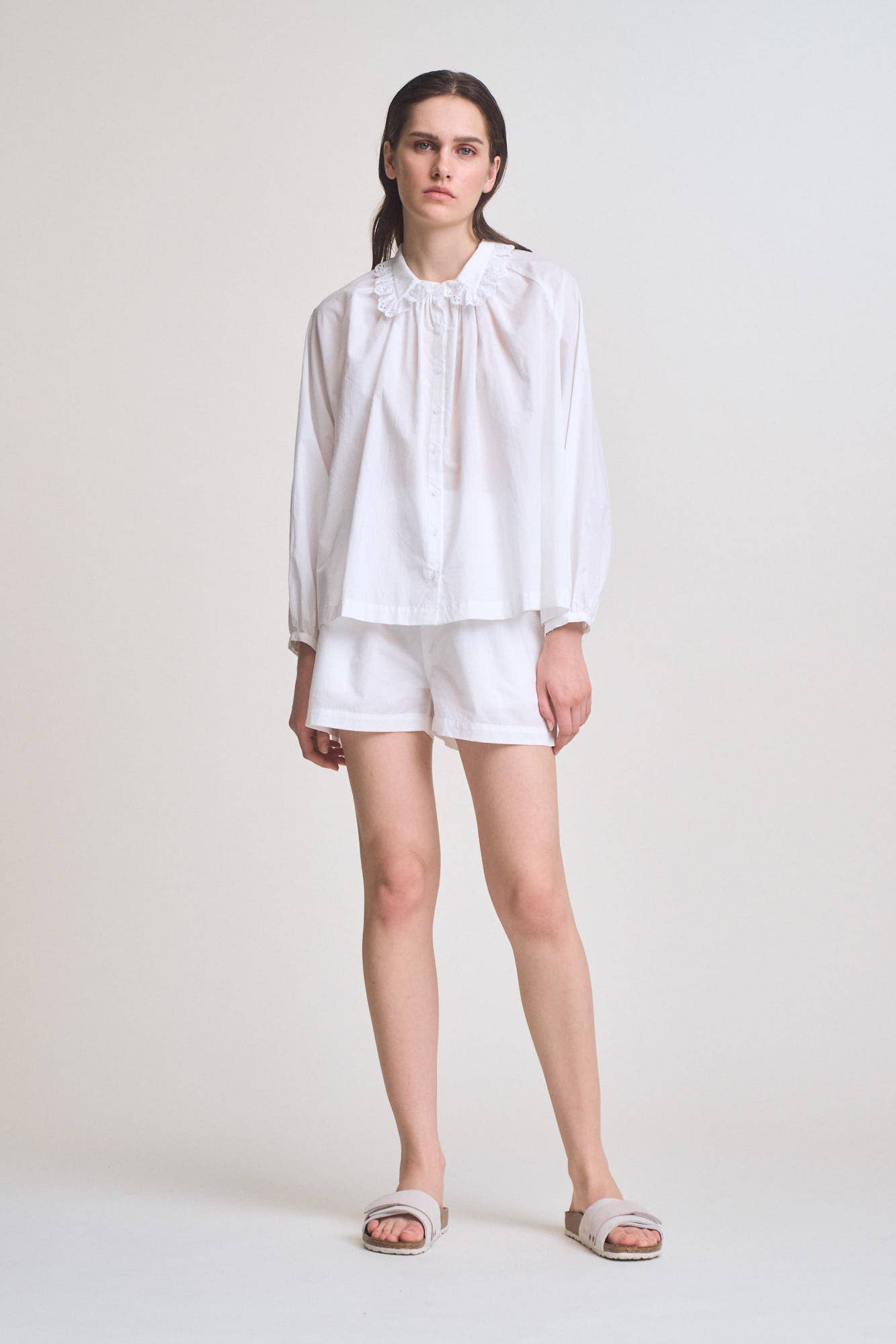Elevate your wardrobe with this refined Missy Eyelet Collar Shirt in crisp white. The delicate eyelet detailing at the collar adds an understated touch of elegance, making it perfect for both professional settings and polished casual occasions. Crafted for a flattering fit, this versatile piece pairs effortlessly with tailored trousers, skirts, or denim. The clean white hue ensures timeless appeal and easy coordination with your existing collection. A sophisticated essential that transitions seamlessly from day to evening.