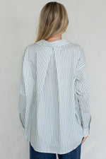 Perfectly oversized, button-down shirt with mini vertical stripes.