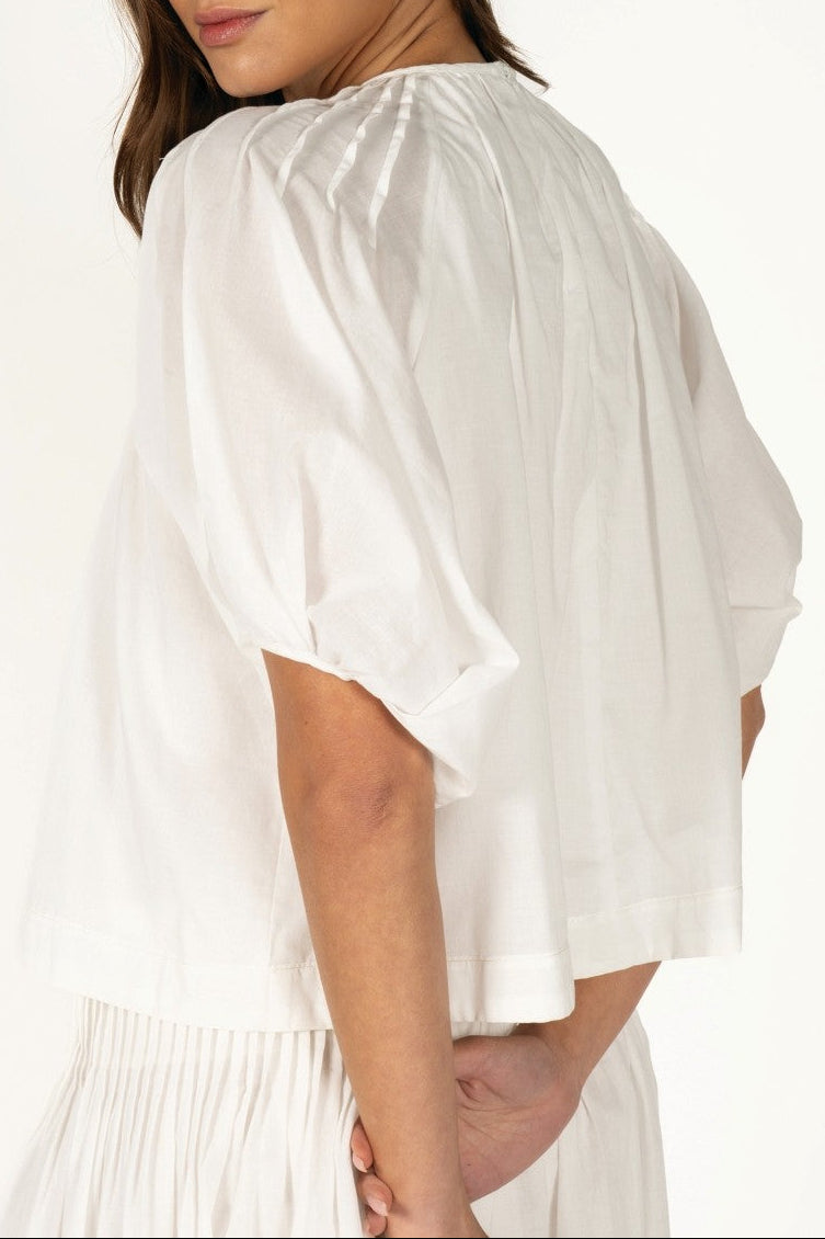 Natalie White Pleated Top womens luxury white blouse Boltranchstore.com matching skirt flowy summer spring free shipping skirt white
