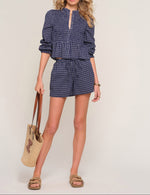The Fiya Two Piece is one of our favorite sets of the season. Made from a gingham cotton voile it features a smocked blouse with puff sleeves. The shorts have a relaxed fit with an elastic waist and drawstring. Wear them together, for a complete look, or seperate for max versatility.